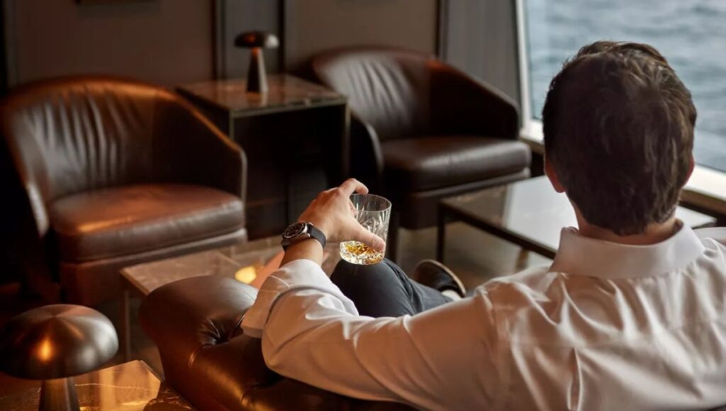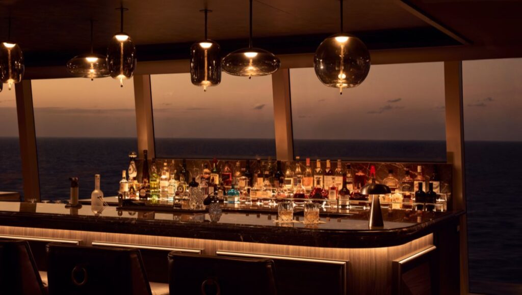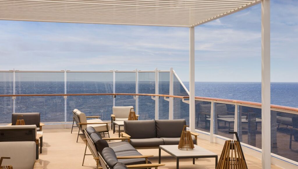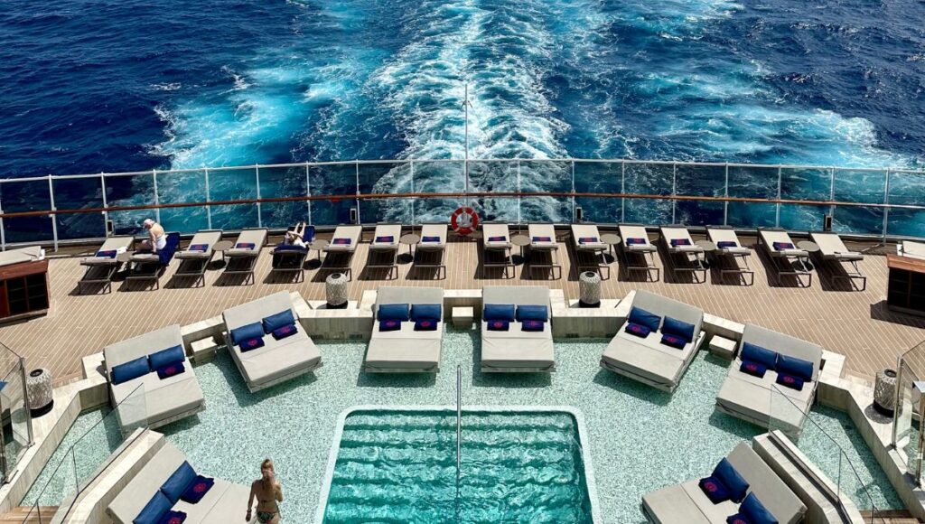 With shaded cabanas, attentive poolside service, and a relaxed atmosphere, the outdoor areas feel more like an exclusive beach club than a traditional cruise ship deck.