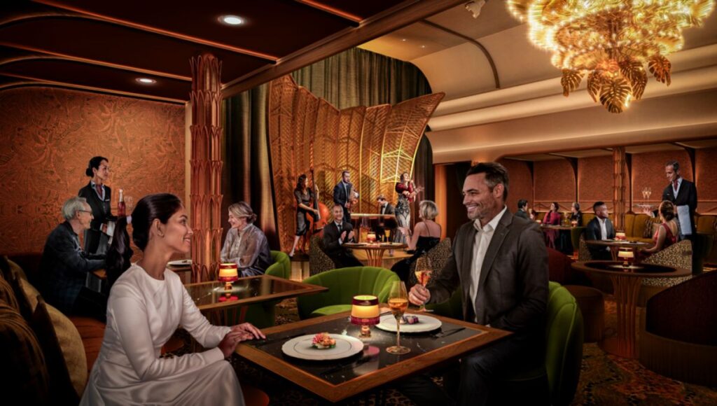 Norwegian Aura focuses on a refined food hall concept. The Indulge Food Hall offers a wide range of global cuisines in an open-air setting, with many options included in the cruise fare. Aura also introduces Sukhothai, Norwegian Cruise Line’s first Thai speciality restaurant, and the Metropolitan Bar with a focus on sustainable cocktails.