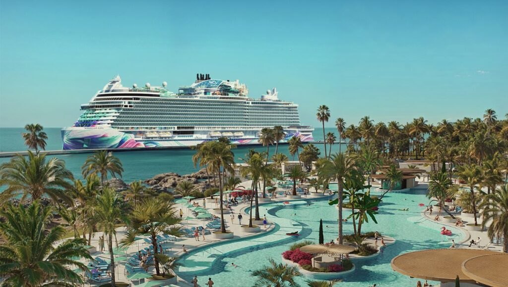 Norwegian Aura launches in May 2027 with Mediterranean sailings from Trieste and Barcelona before moving to Miami for Caribbean itineraries that include Great Stirrup Cay.