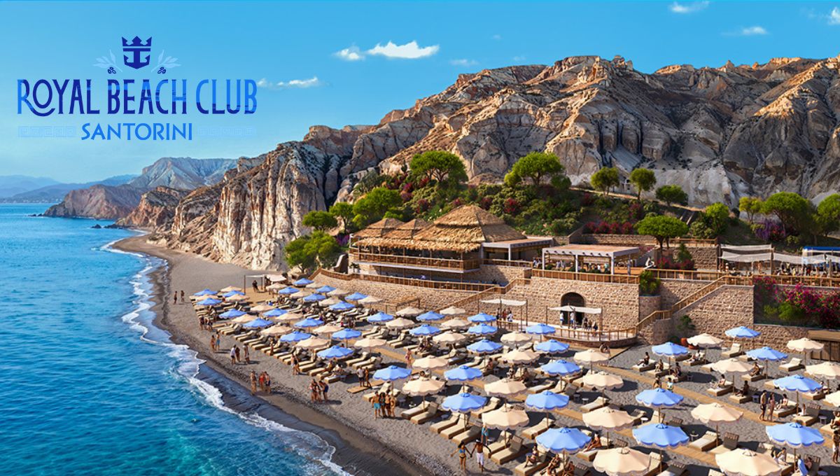 Royal Caribbean will launch this new Santorini beach club in summer 2026, introducing Europe’s first Royal Beach Club. The experience combines iconic island sightseeing with a reserved beach escape on the southern coast. As a result, cruise guests can explore the highlights of Santorini while still securing guaranteed beach time.