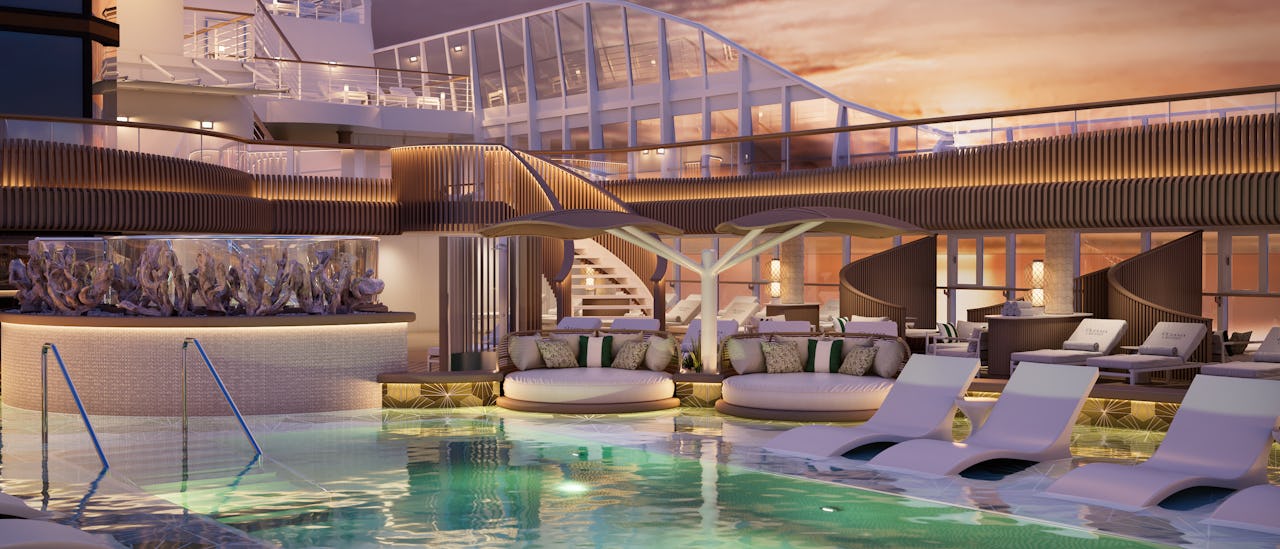 Oceania Vista’s Pool Deck reflects the beauty of the surrounding sea.